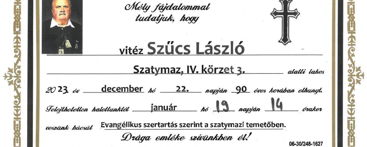 December 22-én elhunyt Szűcs László, aki 1990 és 1994 közöt volt Szatymaz polgármestere. Ezt követően még tíz évig képviselőként tevékenykedett. 2014-ben Szatymaz díszpolágra címet kapott.