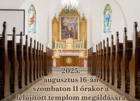 A tavaszi felújítás befejeztével a nyár közepén visszaköltöztek az istentiszteletek a szatymazi templomba. A megújut templom új objektumokkal is gazdagodott. Most szombaton 11 órakor Kiss-Rigó László megyés püspök misézik, délben pedig ebédre várják a szatymaziakat.