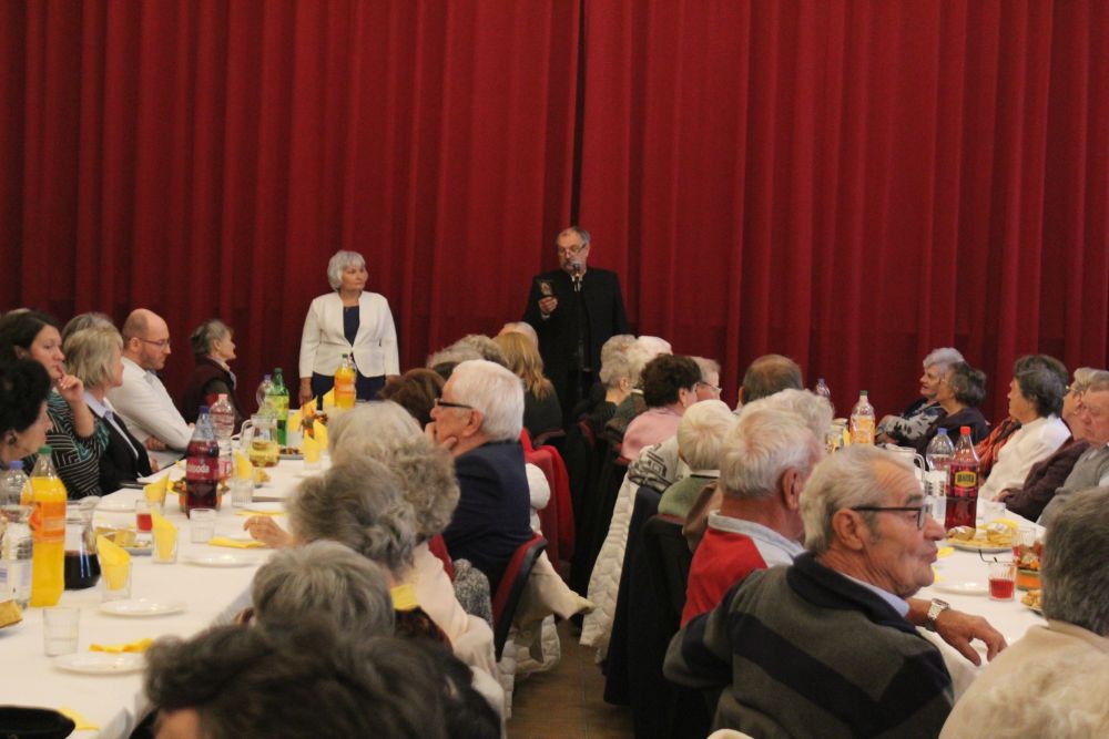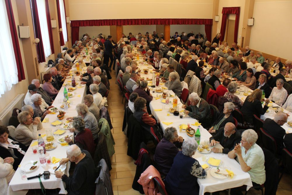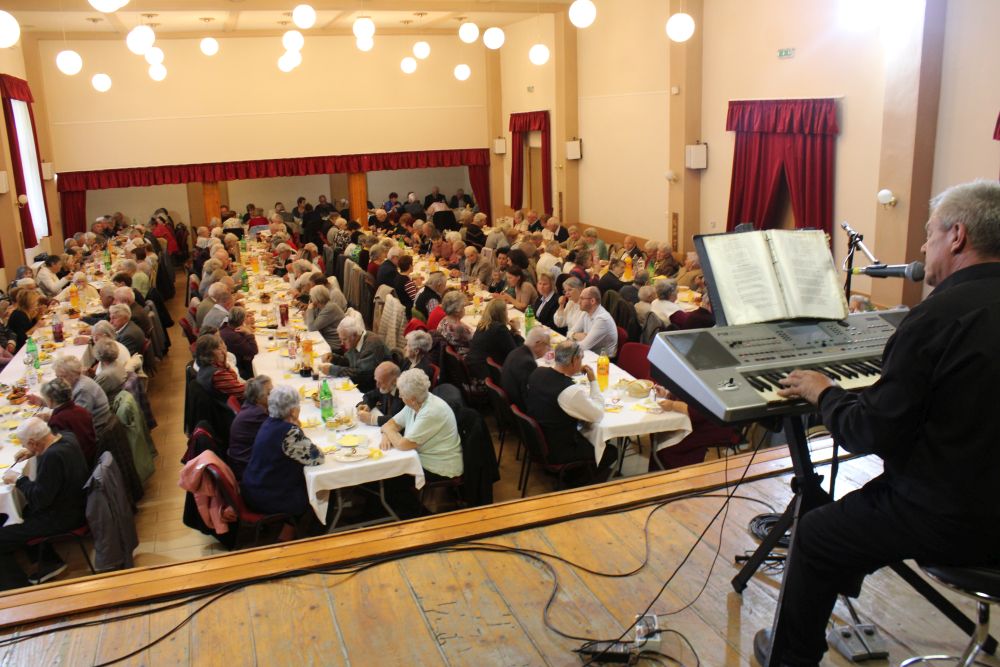 A 75. évüket betöltött szatymaziakat invitálta műsoros ebédre az önkormányzat nevében a művelődési ház és a gondozási központ személyzete valamint a tanyagondnoki szolgálat.