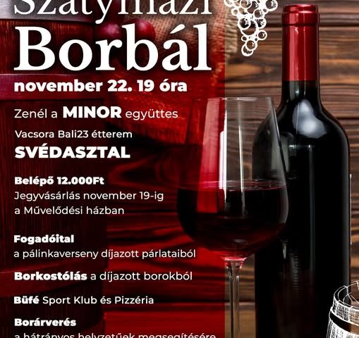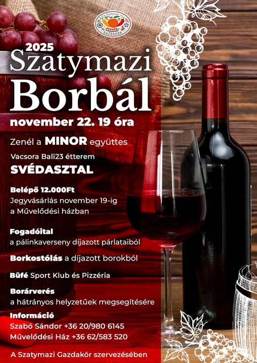 Szeretettel várnak minden borkedvelőt és mulatni vágyót november 22-én, 19 órától a Szatymazi Művelődési Házba!