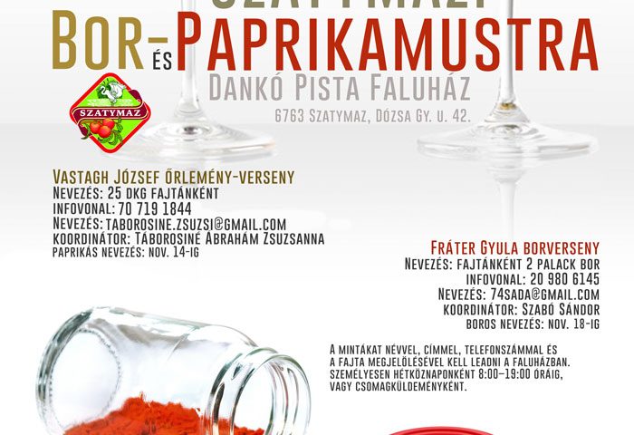A november 21-i szatymazi fűszerpaprika- és borverseny eredményhirdetését és a díjak átadását november 22-én a konferencia végén tartjuk meg.