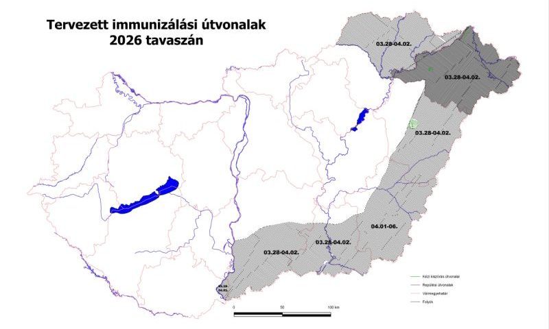 A rókák veszettség elleni immunizálása céljából a csalétekbe ágyazott oltóanyag repülőgépes és kézi kiszórását 2026. március 28-a és 2026. április 2-a között végzik. A csalétek más állatok általi felvétele az immunizálás hatékonyságát veszélyeztetné, ezért szükséges az érintett területeken ebzárlatot, valamint legeltetési tilalmat elrendelni.
