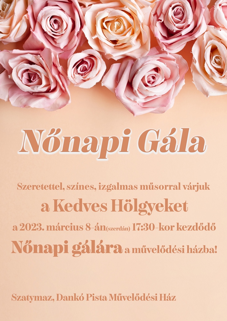 Színes, izgalmas műsorral várjuk a Kedves Hölgyeket, március 8-án 17:30-kor kezdődő Nőnapi gálára a művelődési házba!